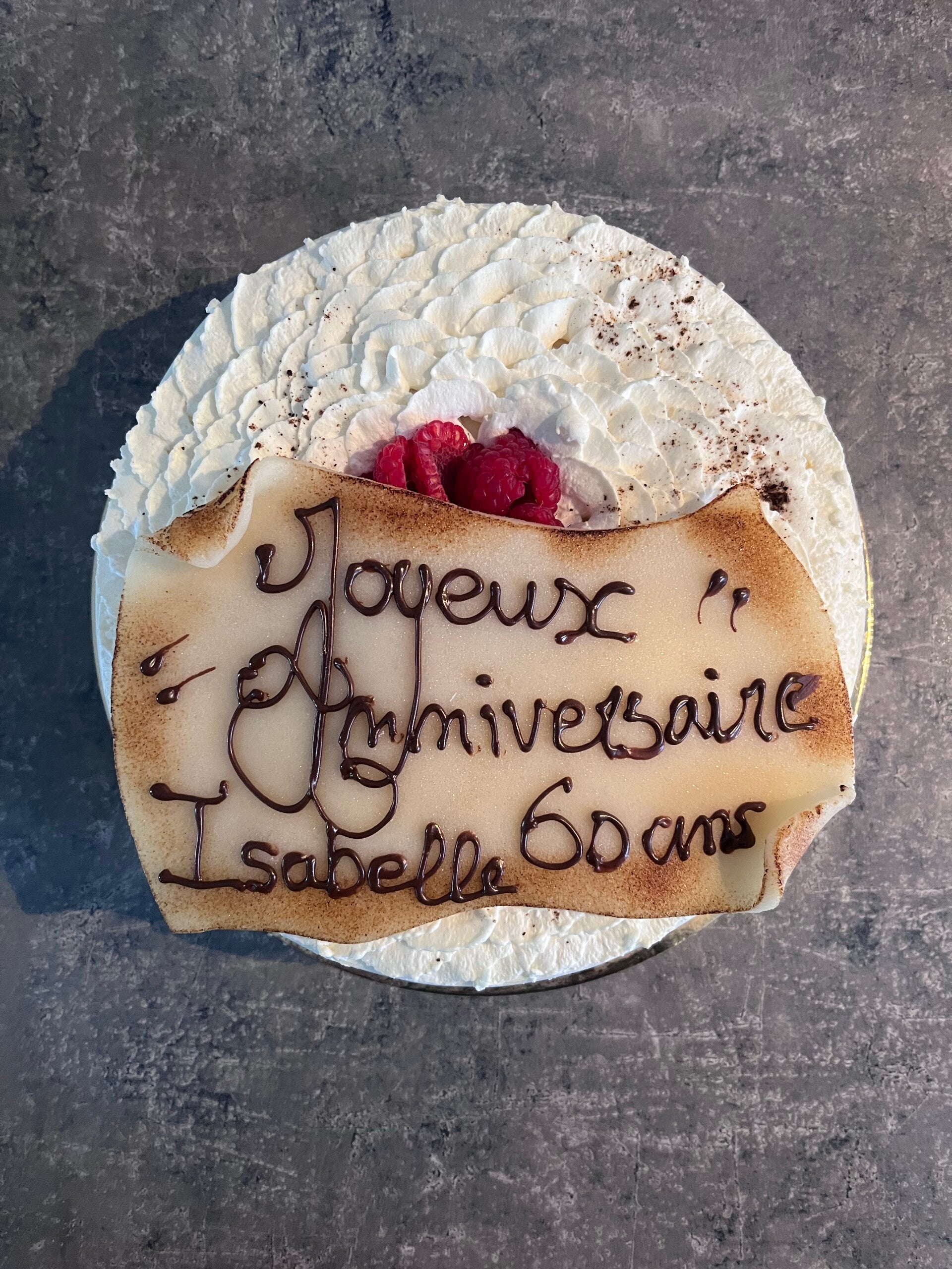 - Plaque pâte d'amande "Joyeux Anniversaire" ou autre : 1.50€